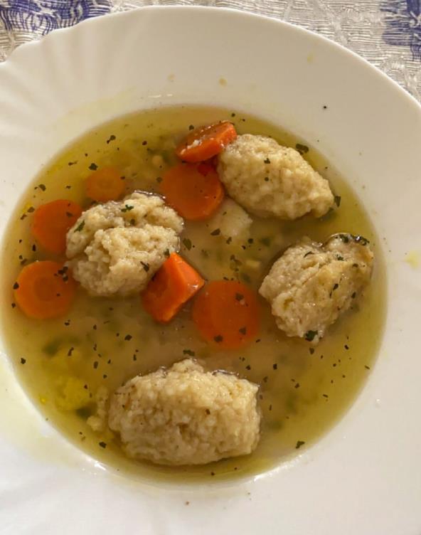 U većoj šerpi propržite seckani crni luk, beli luk i šargarepu. Zatim dodajte ostalo povrće, začine, vodu i kocku za supu. Kuvajte nekih 20 minuta. Odvojite belance i žumance, pa belance penasto umutite. Zatim dodajte žumace, so, ulje i griz. Lepo sjedinite, pa kašičisom sipajte smesu u supu i formiraće se knedle. Kuvajte još 5 minuta.