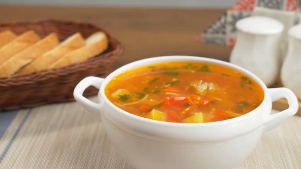 Isecite rebarca i stavite u šerpu, pa sipajte vodu (oko 2,5 l). Kada proključa kuvajte ih još 30-40 minuta. Paradajz isecite u obliku krsta na dnu i stavite u kipuću vodu i ostavite minut, dva. Zatim ih oljuštite, iseckajte i izblendirajte. Rebarca izvadite iz šerpe i u taj bujon dodajte sitno seckani krompir. Kad proključa kuvajte ga još 5 minuta. Zatim propržite sitno seckan crni luk, pa dodajte rendanu šargarepu i seckanu papriku. Kuvajte dok ne omekša. Očistite rebarca od kostiju i sitno iseckajte. Blendirani paradajz sipajte u šerpu sa krompirom i kuvajte, poklopljeno, dok ne krene da ključa. Zatim dodajte meso i rezanca i kuvajte još 5 minuta. Pred kraj dodajte prženo povrće i začinite. Na kraju je pospite seckanim peršunom.