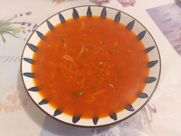 Na ulju prodinstati seckan crni luk. Dodati paradajz sok i vodu, pa kad počne da vri voditi računa jer se stvara pena koju treba skinuti. Ubacite kocku za supu, biber i još malo soli po potrebi. Pred kraju stavite fidu i kada ona omekša čorba je gotova. Peršun stavite na kraju.