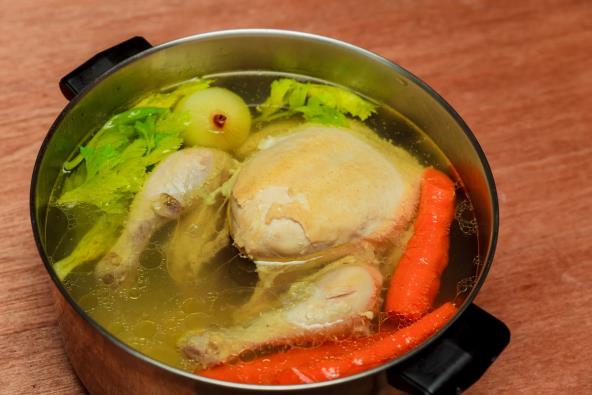 Domaću pileću supu sa rezancima počnite da pravite tako što ćete piletinu da stavite u hladnu vodu da se kuva.