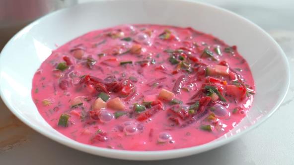Hladna supa sa cveklom je osvežavajuće jelo savršeno za tople letnje dane — lagana, zdrava i prepuna boja i ukusa. Cvekla joj daje bogatu aromu i divnu boju, dok krastavac, mladi luk i mirođija unose svežinu i hrskavost. Najbolje se služi dobro rashlađena, kao predjelo ili lagani obrok.