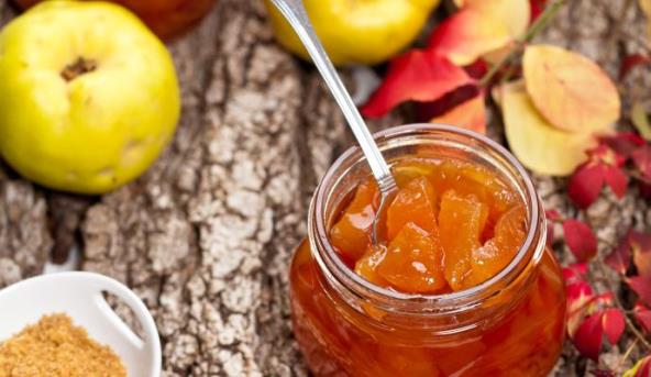 2. U šerpu staviti šećer i preliti sa 1 do 2 čaše vode. Skuvati gust sirup, skloniti sa šporeta i dodati dunje.