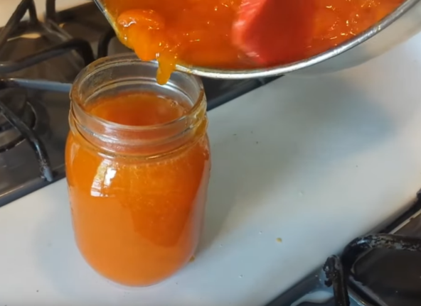 Dok je džem još uvek topao, pažljivo ga sipajte u sterilisane tegle, ostavljajući malo prostora pri vrhu. Zatvorite čvrsto poklopcem. Okrenite tegle naopačke i ostavite ih tako 5-10 minuta kako bi se stvorilo vakuumsko zatvaranje. Ovo će pomoći da džem duže ostane svež. Vratite tegle u normalan položaj i ostavite da se potpuno ohlade na sobnoj temperaturi. Džem čuvajte na suvom i tamnom mestu.