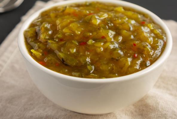 Spakujte zimnicu u vruće, sterilisane tegle, ostavite malo prostora pri vrhu. Prođite čistim nožem ili tankom lopaticom oko unutrašnjosti tegli da biste uklonili sve mehuriće vazduha i zatvorite ih. U veliki lonac sa ključalom vodom spustite tegle sa razmakom od 5 cm, razdvojite ih pomoću stalka ili krpa. Pustite da ključa i kuvajte 10 minuta.