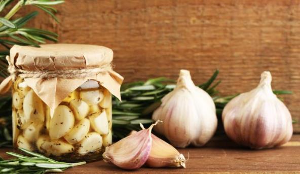 1. U manjoj posudi zagrejte sirće, šećer i so, pa pustite da provri, dodajte začine i još vruće prelijte preko čenova belog luka koje ste gusto složili u prethodno sterilizovanu teglicu.