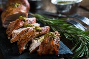 Pečeni svinjski file sa začinskim biljem i salsom od pistaća
