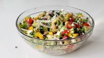 Prolećna salata od svežeg povrća sa seckanim orasima