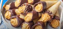 Korneti umočeni u čokoladu i filovani karamel kremom