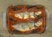 KAKO SE SPREMA BRANCIN: Pecite ga u paradajz sosu sa celim paprikama, a jedan trik otkriva da je riba spremna (VIDEO)