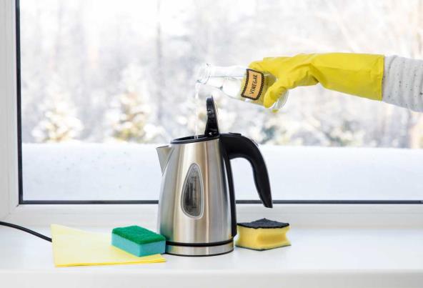 U bokal se sipa 1 l vode i 100 ml sirćeta, uključite bokal da voda provri i ostavite da stoji 5-10 minuta. Ova procedura se ponavlja i ostavlja se da stoji 20 minuta. Prospe se smesa i pažljivo se opere mekim sunđerom. Ponovo se sipa čista voda, proključa i prospe se, opere se bokal.
