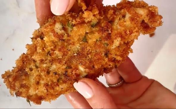 Posle jaja meso uvaljajte u prezle i ispohujte. Korica će biti duplo hrskavija, zbog krupanih deliova hleba, a začini je čine aromatičnijom.