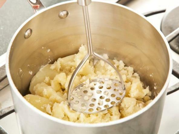 7. Kada pravite pire krompir nakon što ga procedite vratite ga u vrući lonac, sklonite s vatre i pustite da se osuši u toploj posudi još jedan minut. Nakon toga gnječenjem i dodavanjem vode i mleka dobićete baršunastu teksturu.