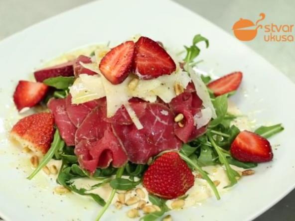Ovoga puta to je Goveđi karpačo preliven dresingom od piva i serviran sa svežim jagodama.