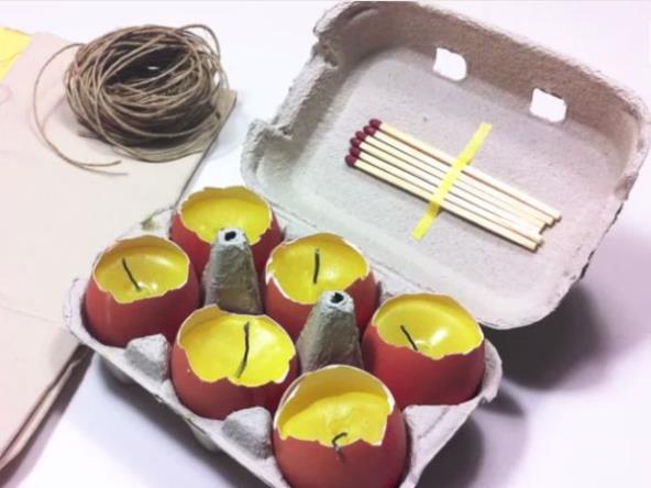 Jednostavno, pčelinji ili sojin vosak topite na pari , ali pre nego postane u potpunosti tečan, stavite malo voska na dno ljuske jajete pa umetnite fitilj (7 cm dužine) koji će se zalepiti za vosak.