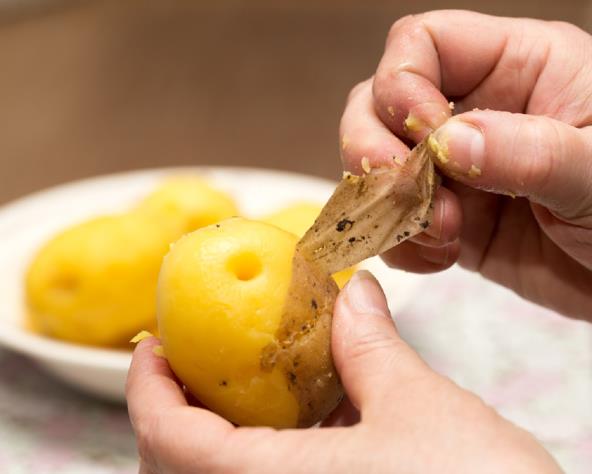 Krompir skuvajte na uobičajeni način. Kada je skuvan na pet sekundi ga potopite u hladnu vodu u koju ste dodali kockice leda, a onda brzo i lako uklonite koru jednim potezom.