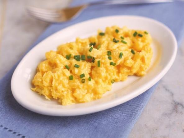 3. Zagrejte tiganj s nelepljivim dnom na visokoj temperaturi, pa u njega stavite puter. Kada se puter otopi i pojave se mehurići dodajte jaja. Sačekajte 3 sekunde bez mešanja, do se na ivicama kajgane ne pojave mehurići. Zatim sklonite tiganj sa ringle i mešajte jaja tako da jedan krug tiganja promešate za sekund. Mešajte tako 12 sekundi.