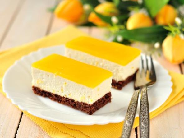 U soku od pomorandže skuvati pudinge od vanile sa šećerom. Kada je puding kuvan, treba posudu sa pudingom staviti u hladnu vodu i konstantno mešati dok se puding ne ohladi skoro do kraja! Kada je gotovo ohlađen treba ga kašikom premazati preko prvog krema od sira.