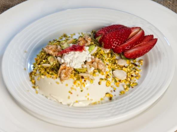 Pospite sa sitno seckanim nesoljenim pistaćima ili sa sitno seckanim pečenim lešnicima i sa malo kokosa.