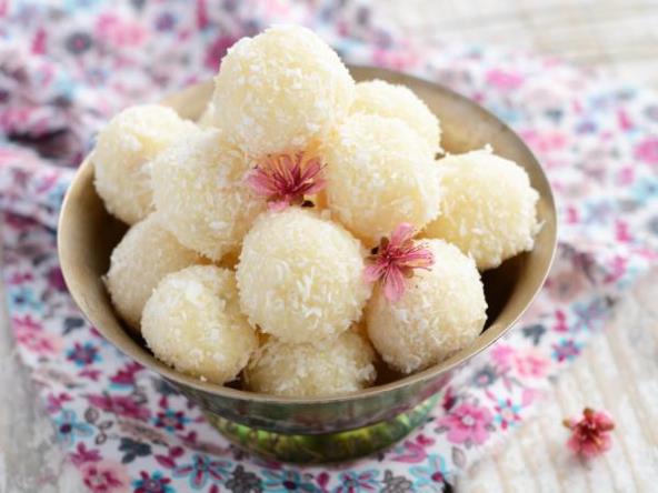 Otopite 400 g bele čokolade na pari, pa umačite polu-zamrznute kuglice u čokoladu (držite ih malo nad šerpom da okapaju), pa odmah uvaljajte u kokos. Ostavite da kratko odstoje na sobnoj temperaturi, pa ih služite.