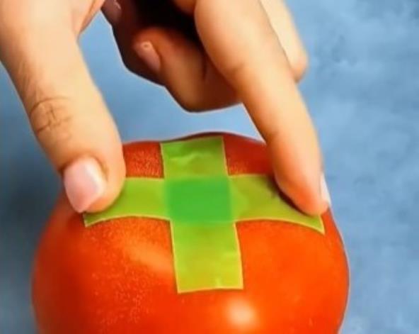 Obično ga ljudi čuvaju u frižideru i to može da mu pomogne da ostane duže svež, ali vrlo je verovatno da će na taj način ostati bez ukusa, a to se događa zbog hladnoće koja blokira određene enzime u njima. Postoji jednostavno rešenje kojim možete da sačuvate sočnost i svežinu paradajza, a to je da uzmete dve trake i zalepite ih u obliku krsta na onom belom delu. Tako će paradajz trajati 3 nedelje duže.