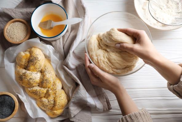 Nakon sat vremena izvadite testo na radnu površinu, premesite malo i podelite na 3 dela. Svaki deo razvaljajte u oblik štapića pa ispletite pletenicu. Prebacite je u pleh, premažite žumancetom i pospite susamom, pa pecite na 180 stepeni pola sata.