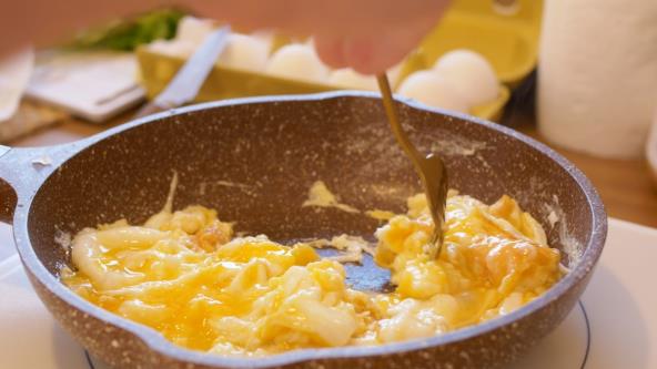 Priprema je jednostavna: umutite dva ili tri jajeta u činiji, a zatim ih sipajte u blago zagrejan tiganj bez ikakve masnoće. Dok se jaja lagano zgušnjavaju, nežno ih preklapajte spatulom.