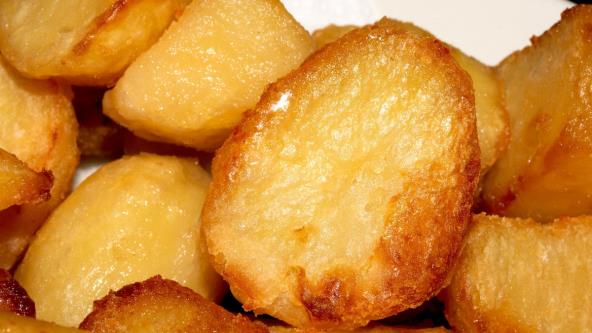 Nakon kratkog kuvanja, krompir rasporedite u zagrejan pleh sa uljem ili masnoćom i pecite na visokoj temperaturi, bez smanjivanja. Posmatrajte boju, kada postane zlatna, a spoljašnjost hrskava, spreman je.