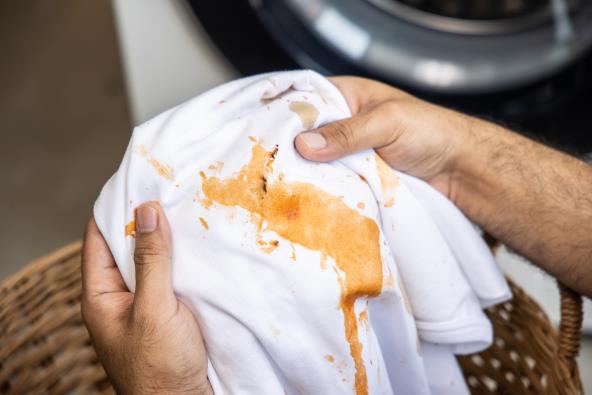 Mrlje na garderobi od masnoće ili ulja, prvo natopite deterdžentom i ostavite da odstoji pola sata, a zatim stavite mrlju pod malo vruće vode i operite je.
