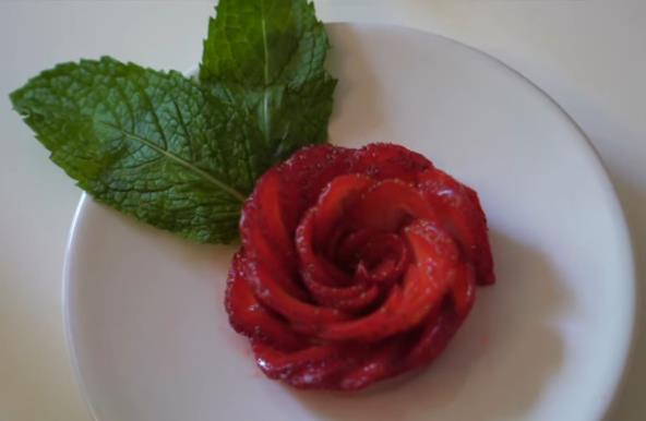 Na YouTube-u ovaj video ima preko 4 milion pregleda, a ako i vi želite da naučite kako se prave ruže od jagoda, sve što treba da uradite jeste da krenete da sečete od vrha ka dnu. Zasečete malo, a kada stignete do sredine izdubite. Pogledajte i video da vidite sve korake.