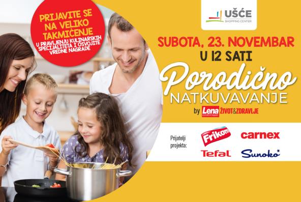 Kulinarski događaj “Porodično natkuvavanje by Lena”, namenjen celoj porodici, održava se sutra 23. novembra od 12 časova u šoping centru “Ušće”. Tim povodom sve posetioce očekuju veoma atraktivan zabavni program, brojna takmičenja, kao i vredni pokloni.