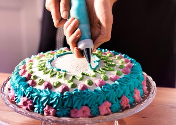 Kako se šara? Napunite vrećicu, uvijete je na vrhu kako fil ne bi izlazio, pritiskate kesicu praveći, zahvaljujući nastavcima, fantastične oblike!