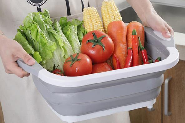 2. Kada povučete njene ivice na gore, od nje nastaje posuda u kojoj se može odložiti i oprati voće/povrće