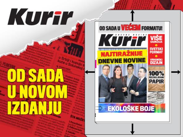 Dnevne novine Kurir od ponedeljka 22. juna prelaze na novi – veći format, koji će biti ispraćen modernim dizajnom, sadržajnijom ponudom vesti i ekološkom štampom na 100% recikliranom papiru.