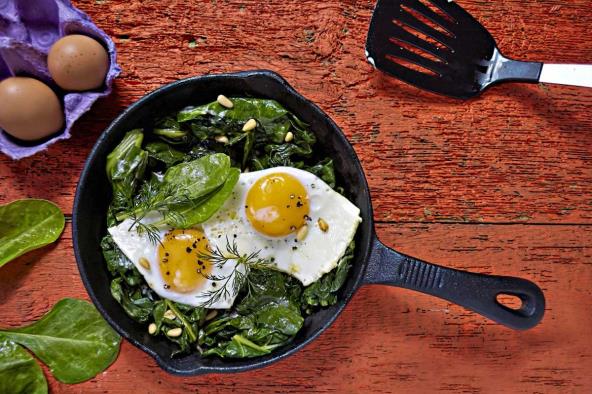 poširana jaja sa spanaćem i integralnim hlebom
