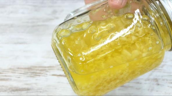 Glavice belog luka neočišćene prelijte vodom i ostavite da se natapa 10 minuta. Tako ćete ga lakše očistiti kasnije. Kada očistite svaki čen gnječilicom usitnite. prelijte potom maslinovim uljem i promešajte. Prebacite sadržaj u teglu sa poklopcem i čuvajte tako 14 dana na suvom i hladnom mestu. Dva do tri puta dnevno protresite teglu. Nakon 2 nedelje procedite ovu smesu da dobijete prirodno ulje za bolne zglobove. Beli luk koji vam ostane iskoristite za pripremu jela.