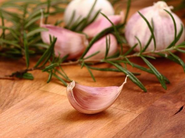Beli luk isećete na sitne komadiće, dodate u vino i ubacite ruzmarin.